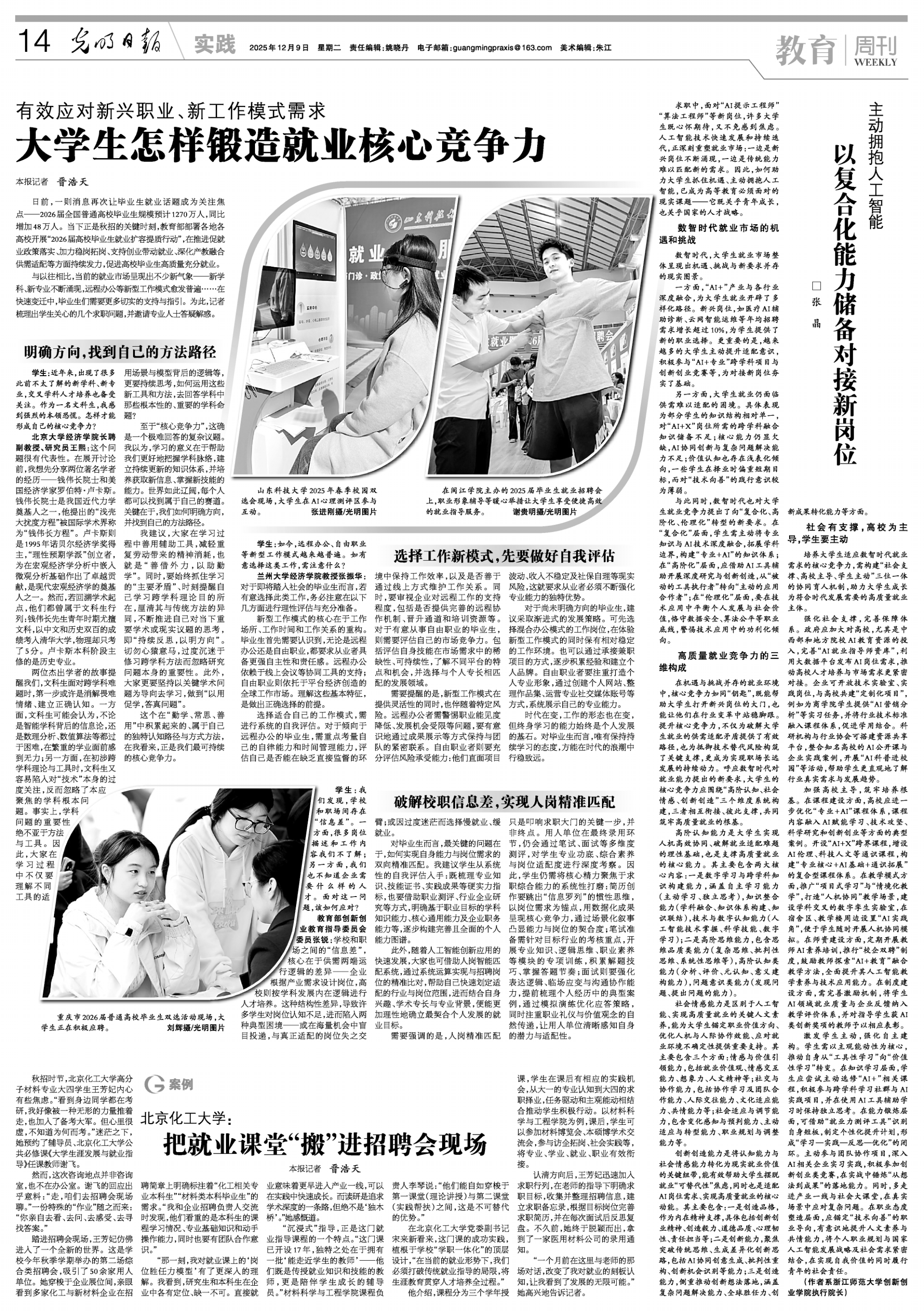 学生:我们发现,学校和职场间存在“信息差”。一方面,很多岗位描述和工作内容我们不了解;另一方面,我们也不知道企业需要什么样的人才。面对这一问题,该如何应对?